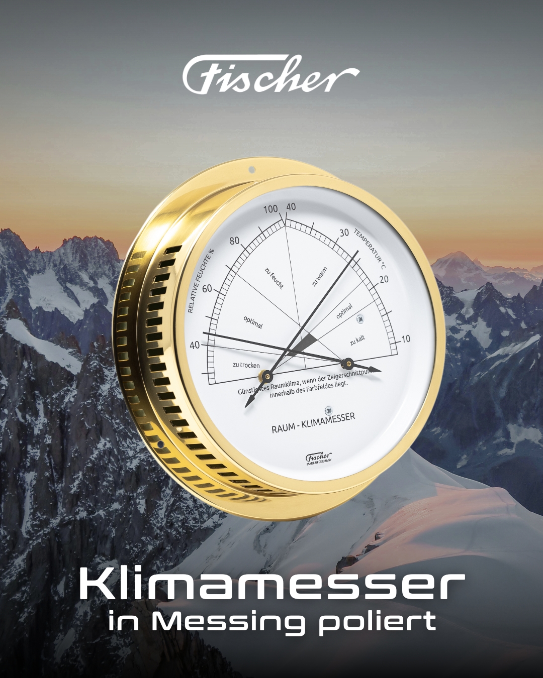 Hochwertiges Haar-Hygrometer synthetic, kombiniert mit Bimetall-Thermometer zur Messung des Raumklimas.